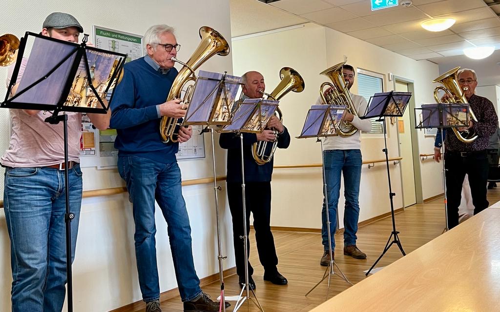 v.links: A.Baral Bezirksposaunenwart, P. Frank 73 Jahre Posaunenchor, H. Frank 68 Jahre Posaunenchor, D. Hertner 64 Jahre Posaunenchor